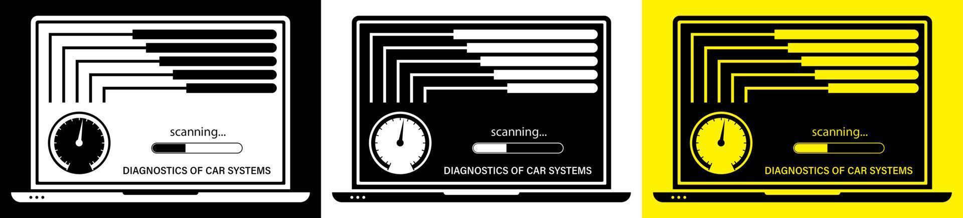 portátil comprueba que el vehículo funciona correctamente. diagnóstico informático de sistemas de automóviles con programas especiales. servicio de coche en el centro de servicio. vector Vector Pro