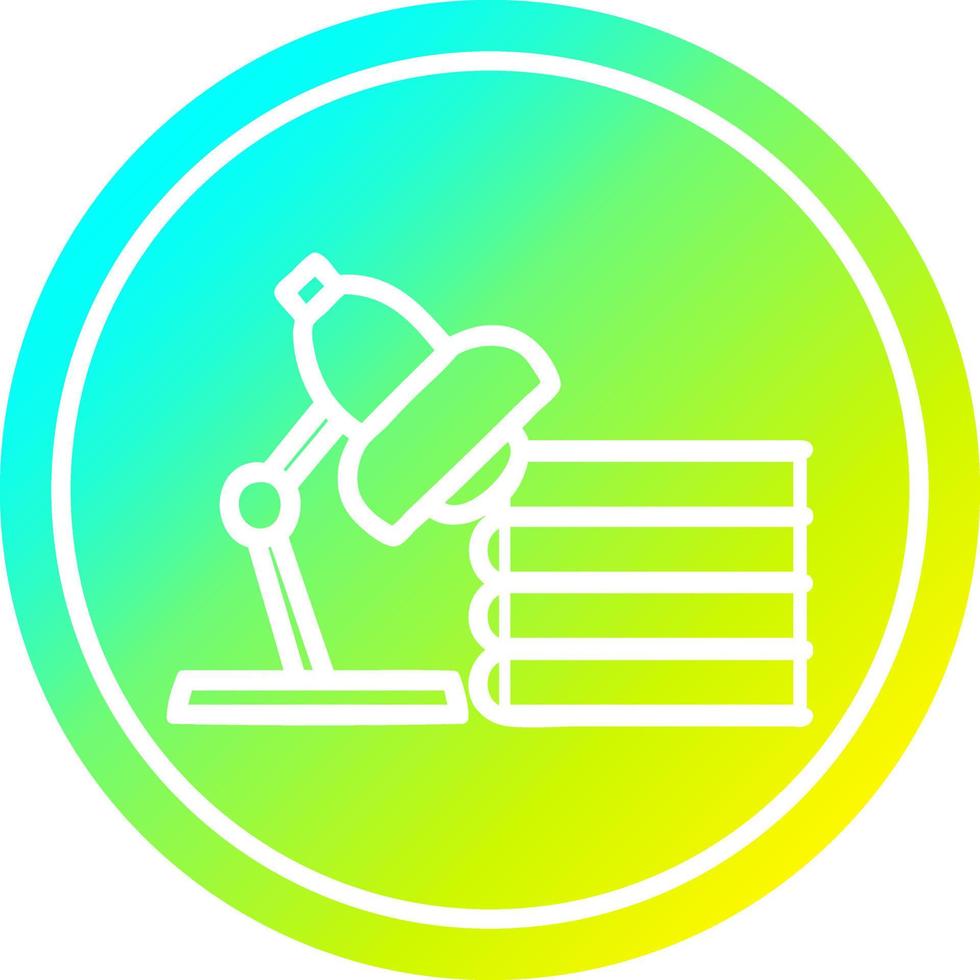 lámpara y libros de estudio circulares en espectro de gradiente frío Pro Vector y Pro SVG