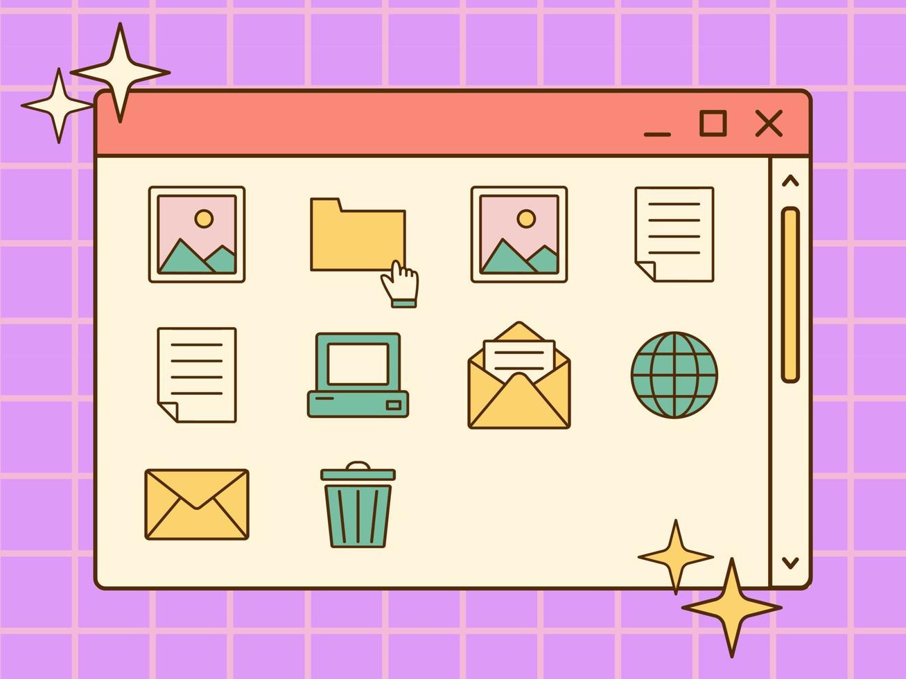 explorador de archivos retro vectorial. ui nostálgico. interfaz de computadora retro vaporwave. linda carpeta. Vector Pro