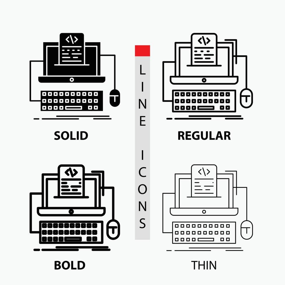 código. codificación. computadora. monobloque. icono de pantalla en fino. regular. línea en negrita y estilo de glifo. ilustración vectorial Vector Gratis