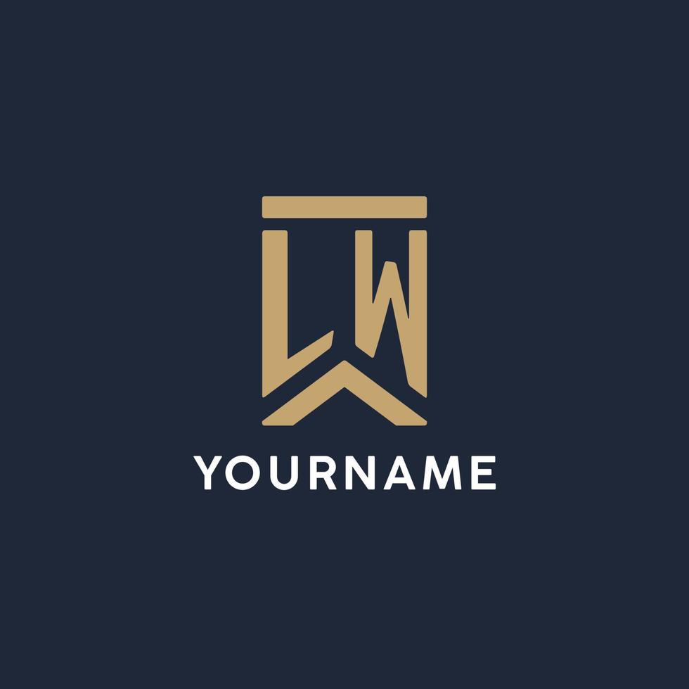 diseño de logotipo de monograma inicial lw en un estilo rectangular con lados curvos Pro Vector y Pro SVG
