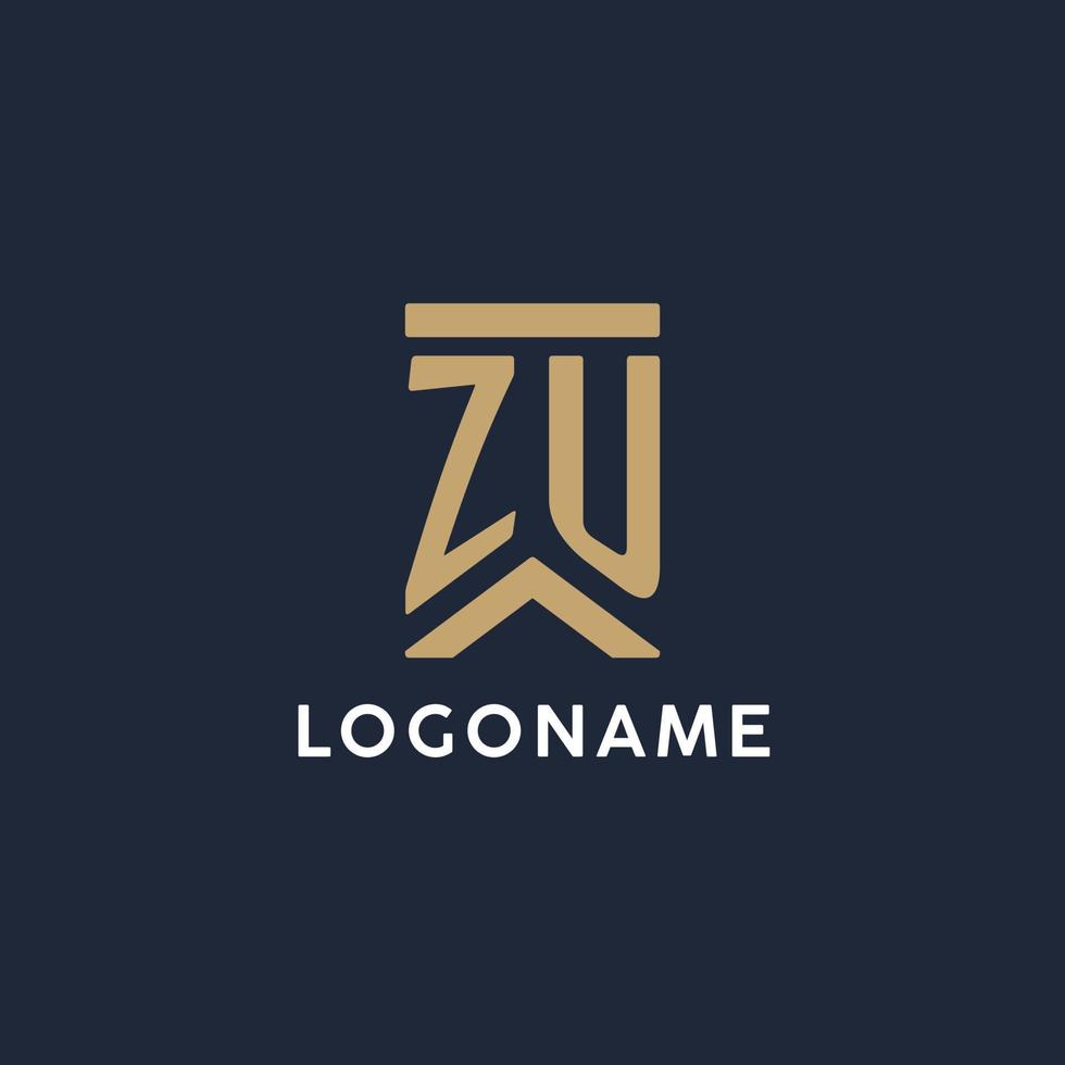 diseño del logotipo del monograma inicial zu en un estilo rectangular con lados curvos Pro Vector y Pro SVG
