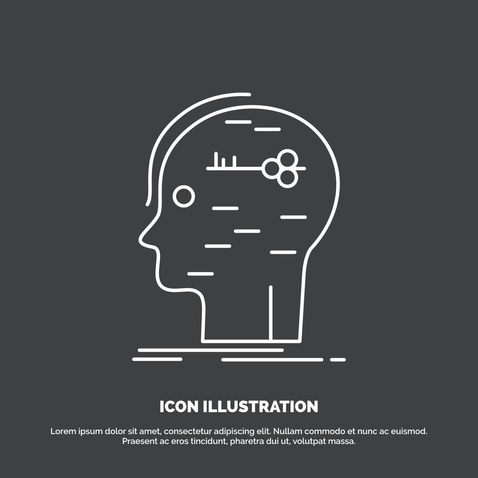 cerebro. cortar a tajos. hackear. llave. icono de la mente. símbolo de vector de línea para ui y ux. sitio web o aplicación móvil Vector Gratis