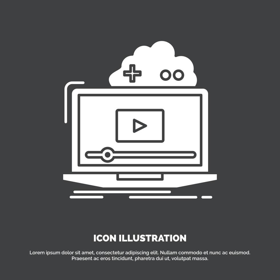 nube. juego. en línea. transmisión. icono de vídeo símbolo de vector de glifo para ui y ux. sitio web o aplicación móvil