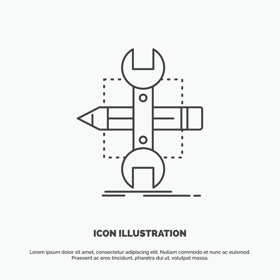 construir. diseño. desarrollar. bosquejo. icono de herramientas. símbolo gris vectorial de línea para ui y ux. sitio web o aplicación móvil vector