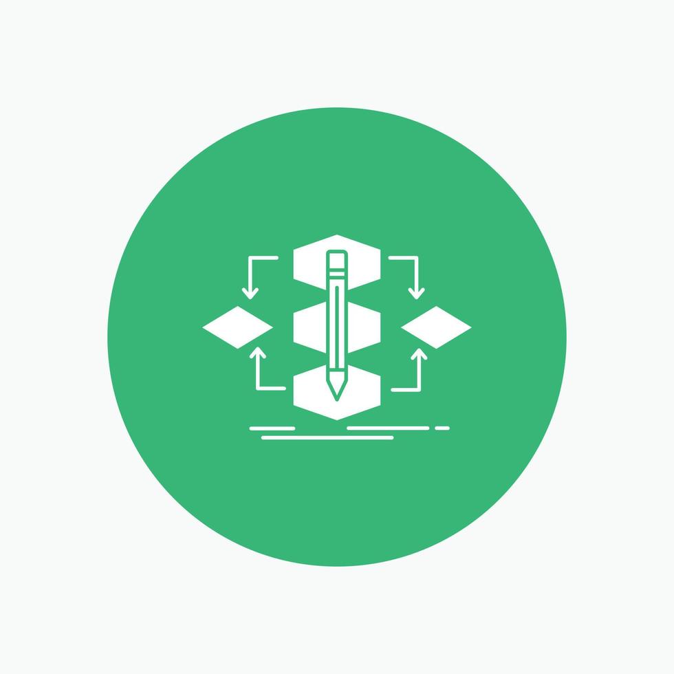 algoritmo. diseño. método. modelo. procesar icono de glifo blanco en círculo. ilustración de botón de vector