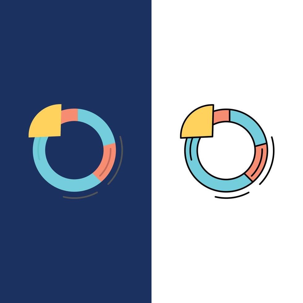 gráfico círculo gráfico circular iconos planos y llenos de línea conjunto de iconos vector fondo azul