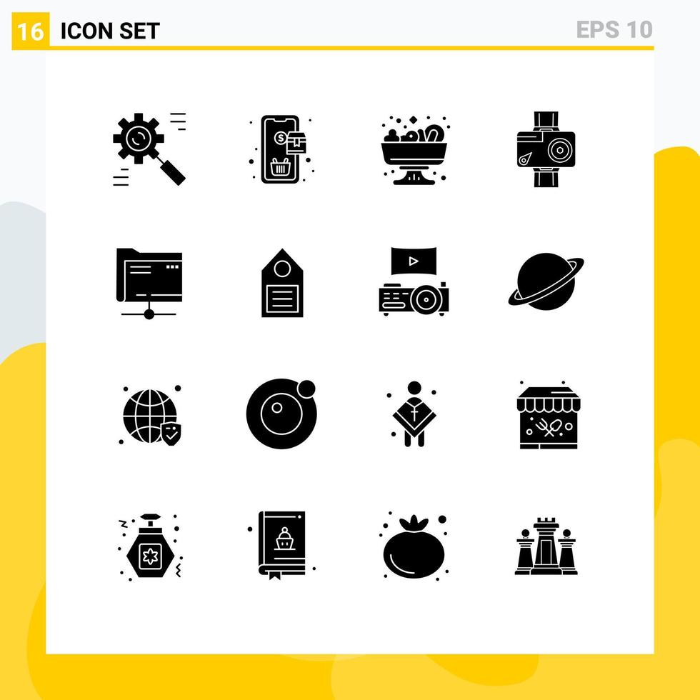 paquete de línea de vector editable de 16 glifos sólidos simples de carpeta video compras cámara digital elementos de diseño de vector editable
