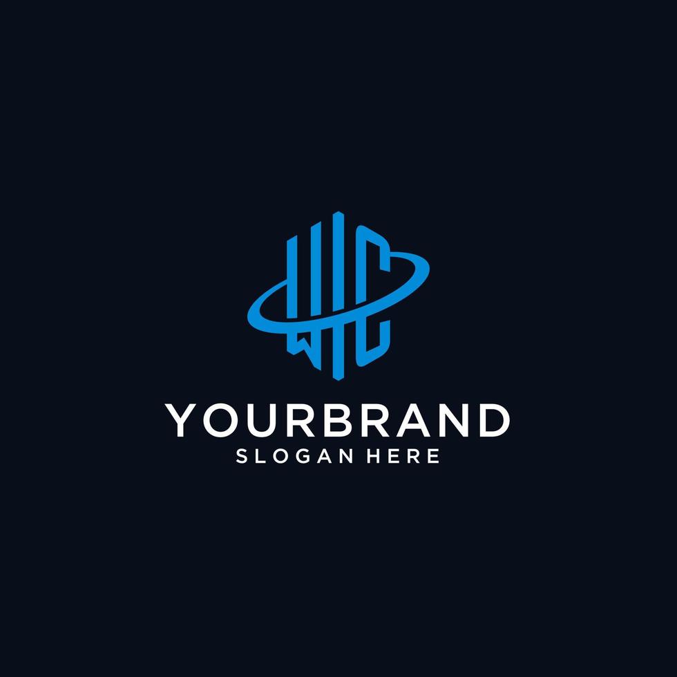 logotipo de monograma inicial wc con forma hexagonal y diseño de swoosh Pro Vector y Pro SVG