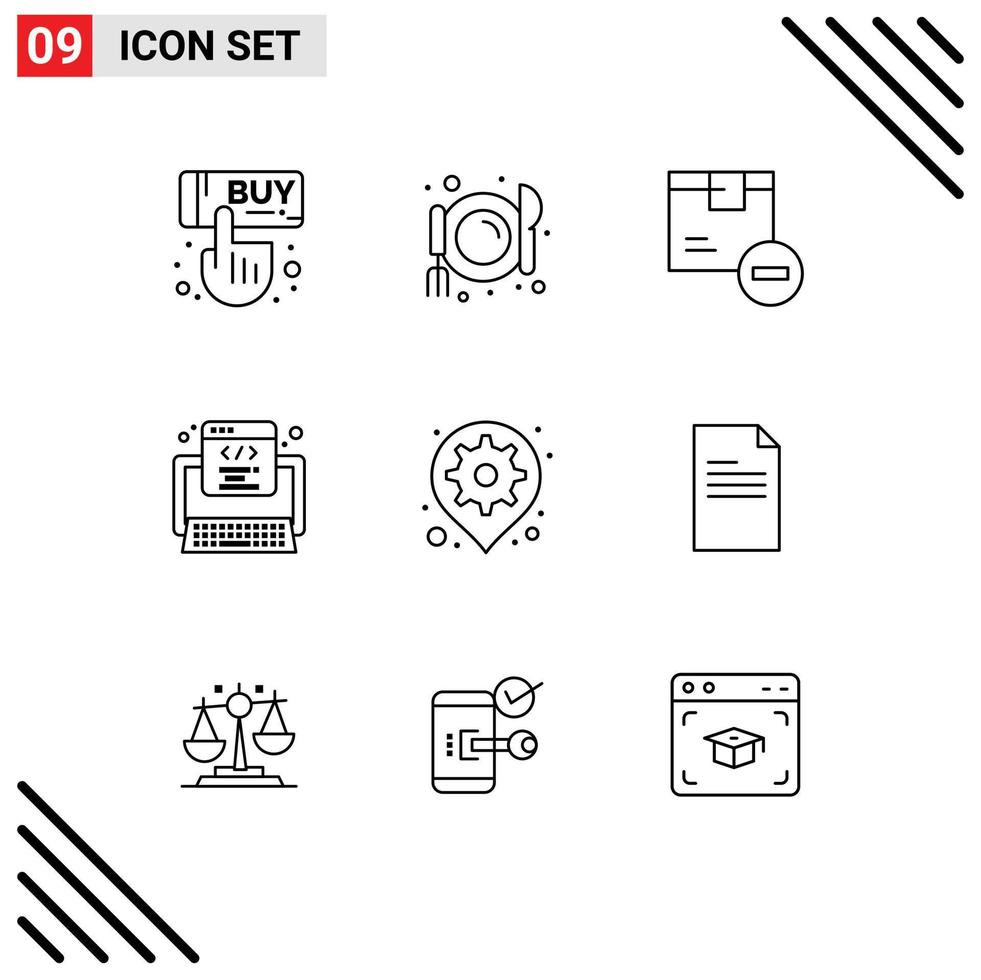 paquete de iconos de vector de stock de 9 signos y símbolos de línea para gps web eliminar código de programa elementos de diseño de vector editables
