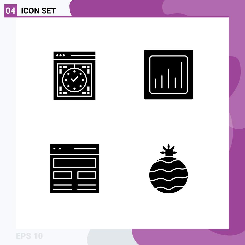 conjunto de pictogramas de 4 glifos sólidos simples de interfaz de gráfico de reloj de encabezado de computadora elementos de diseño vectorial editables vector