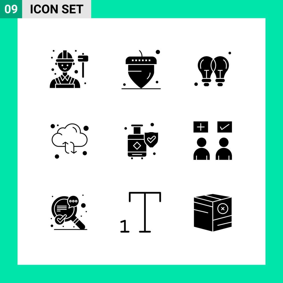 9 conjunto de glifos sólidos universales para aplicaciones web y móviles seguros flecha idea sincronizar elementos de diseño vectorial editables en la nube vector