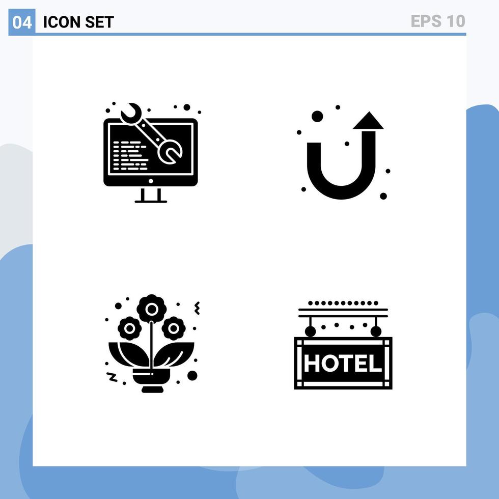conjunto moderno de 4 glifos y símbolos sólidos, como la codificación de desarrollo web de rosas, elementos de diseño de vectores editables de viaje en U