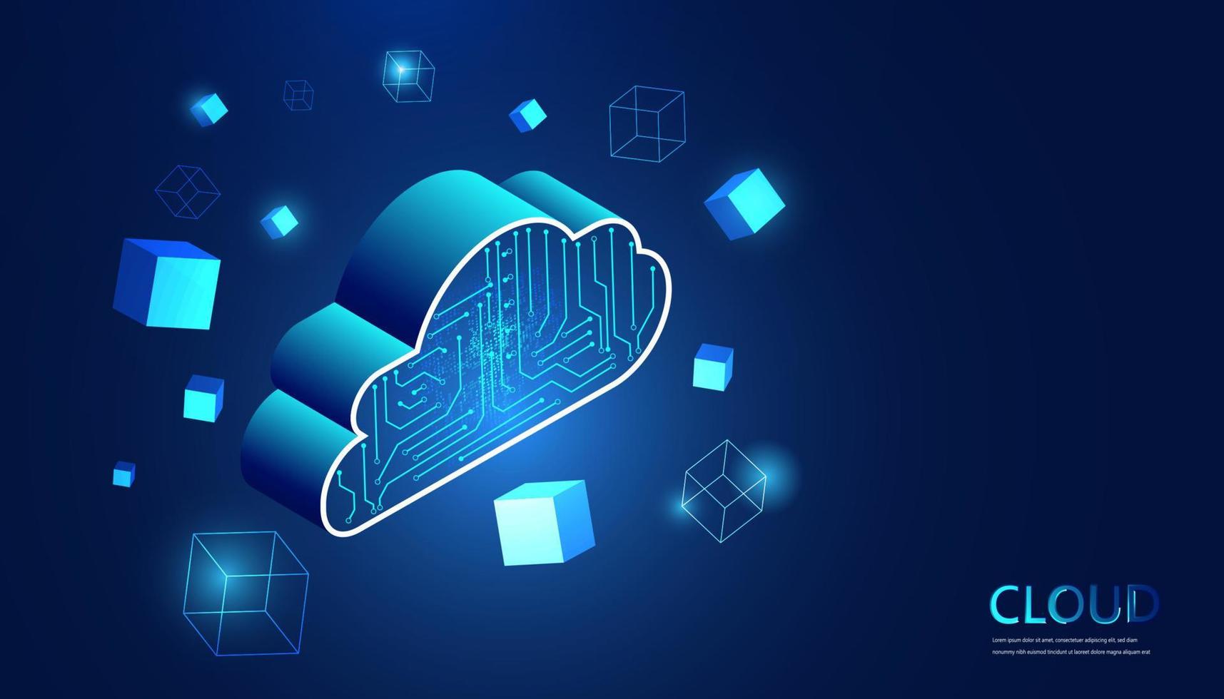 nube abstracta, almacenamiento de datos en línea, en la red, en el sistema blockchain. alta seguridad sobre un fondo azul Vector Pro