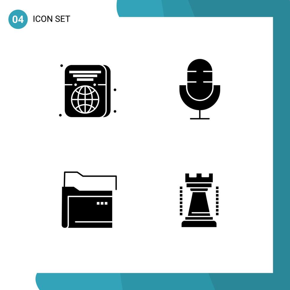 conjunto de glifos sólidos universales para aplicaciones web y móviles elementos de diseño vectorial editables del servidor de micrófono de identificación de datos de pasaporte Vector Gratis
