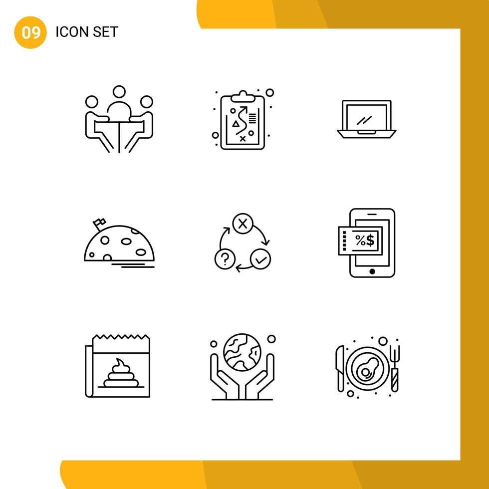 9 esquemas universales establecidos para aplicaciones web y móviles mars moon computer space pc elementos de diseño vectorial editables vector