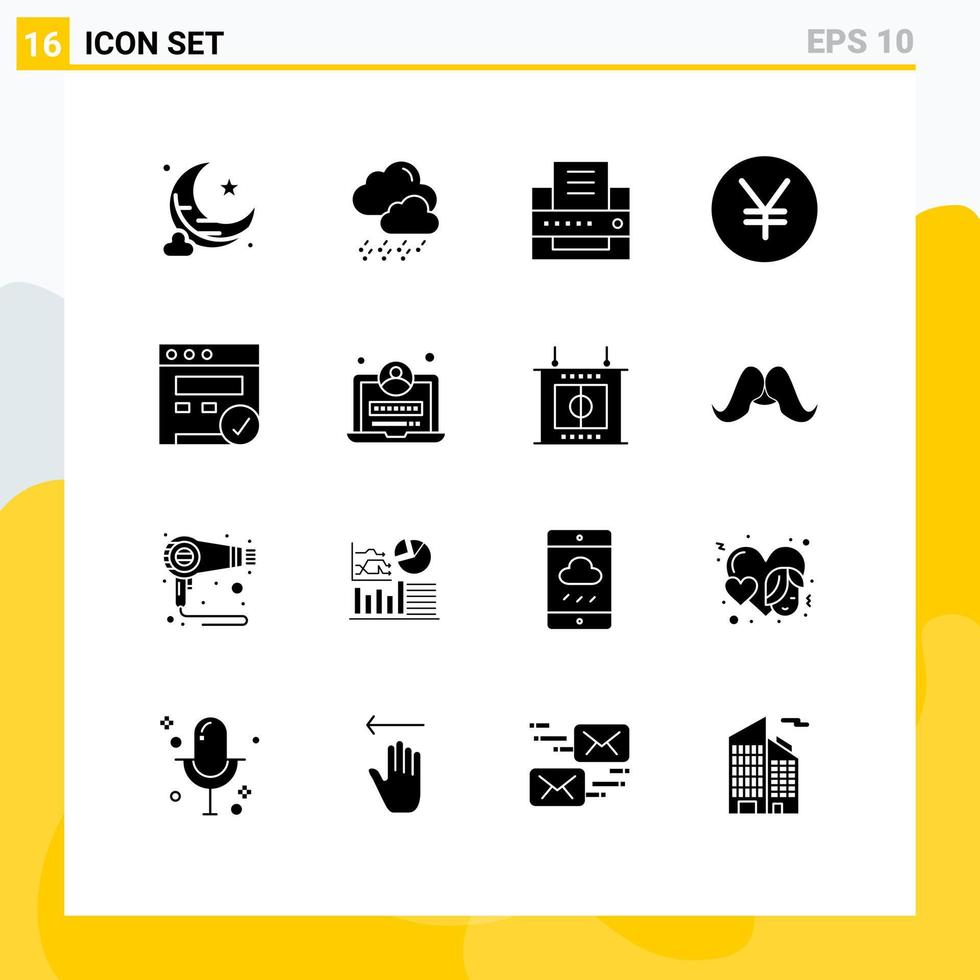 16 concepto de glifo sólido para sitios web móviles y aplicaciones desarrollo de inicio de sesión navegador web elementos de diseño vectorial editables vector