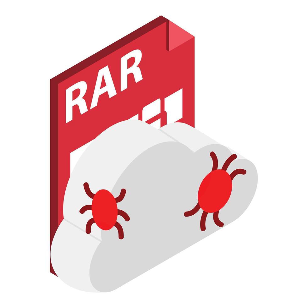 icono de error en la nube vector isométrico. nube con error de software e icono de archivo rar Vector Pro