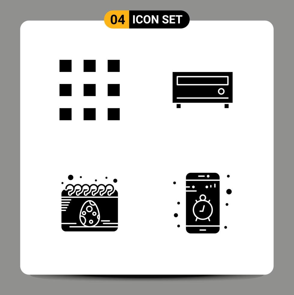 4 concepto de glifo sólido para sitios web móviles y botones de aplicaciones elementos de diseño de vector editables de huevo de medios de bloqueo de fecha