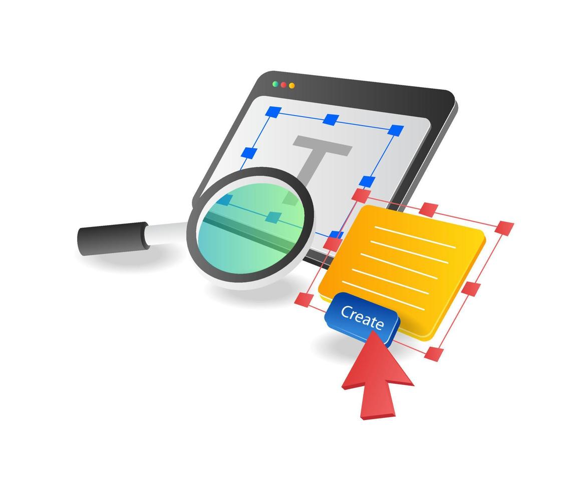 idea creativa de ilustración de concepto 3d plano isométrico crear diseño de aplicación web en monitor Vector Pro