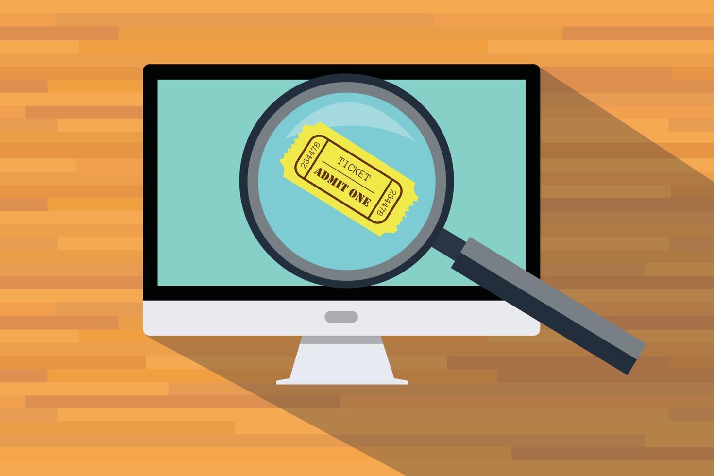 comprar y encontrar un boleto en línea usar una computadora o una red de Internet Vector Gratis