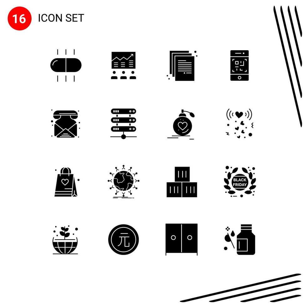 paquete de líneas vectoriales editables de 16 glifos sólidos simples de tecnología teléfono gráfico código de barras documento elementos de diseño vectorial editables vector