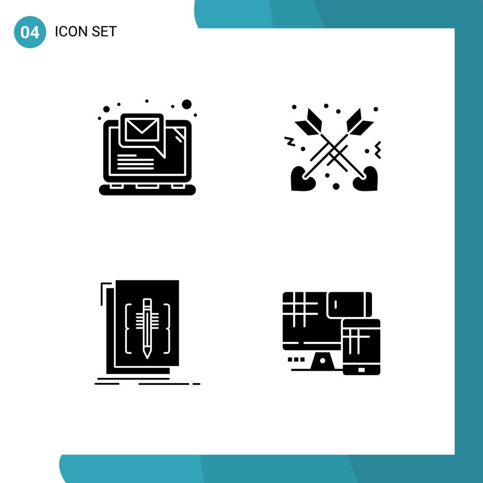 4 concepto de glifo sólido para sitios web móviles y aplicaciones editor de computadora notificación programa de amor elementos de diseño vectorial editables vector