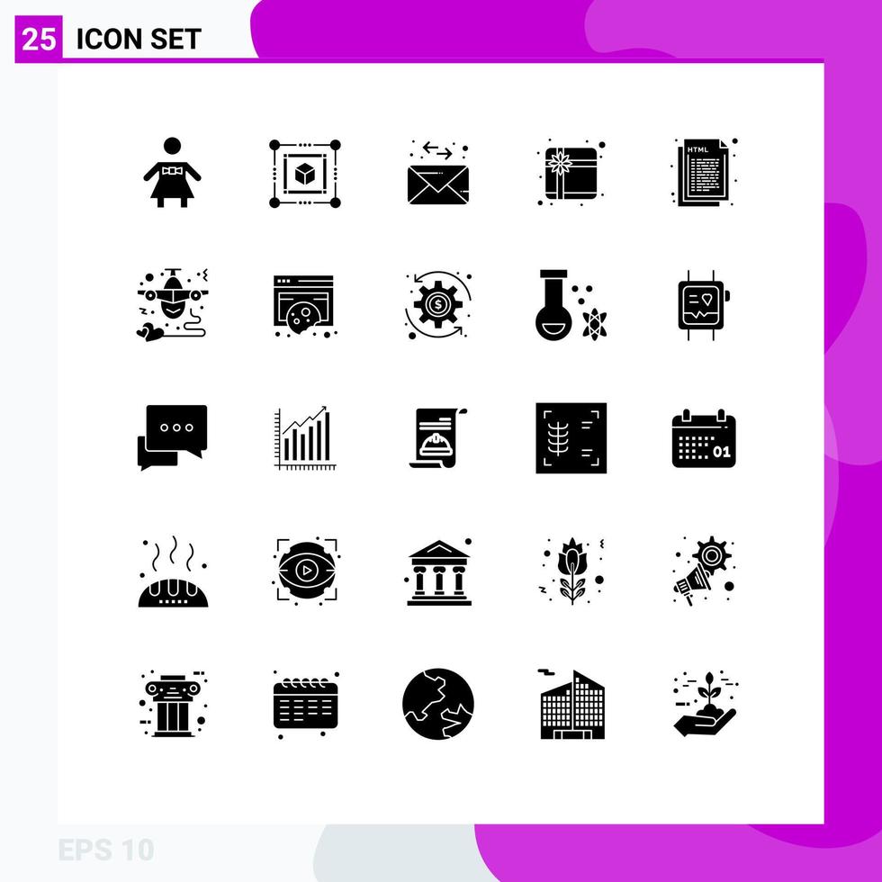 grupo de símbolos de icono universal de 25 glifos sólidos modernos de mensaje web de avión codificación html elementos de diseño vectorial editables vector