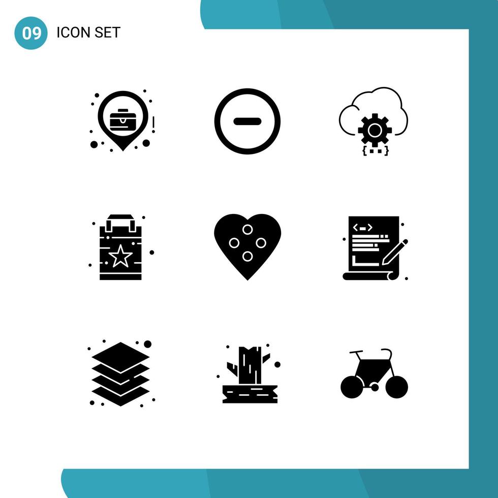 paquete de líneas vectoriales editables de 9 glifos sólidos simples de bolsa de compras de codificación de estrella de botón de vestido elementos de diseño vectorial editables vector