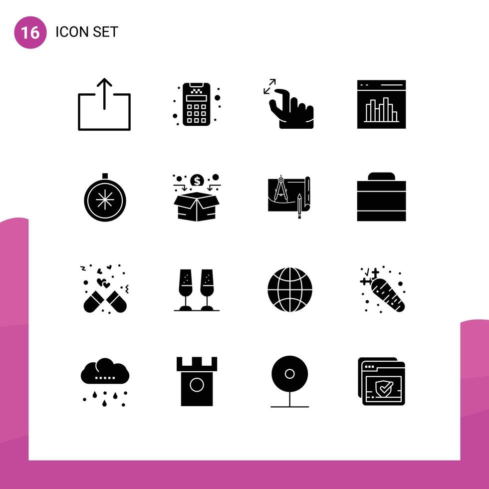 conjunto de pictogramas de 16 glifos sólidos simples de brújula de navegación apretar comunicación de usuario elementos de diseño vectorial editables vector