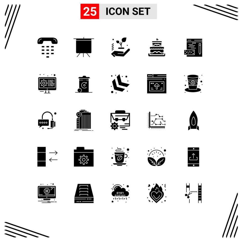 paquete de 25 signos y símbolos de glifos sólidos modernos para medios de impresión web, como codificación, programación, codificación manual, elementos de diseño de vectores editables para bodas