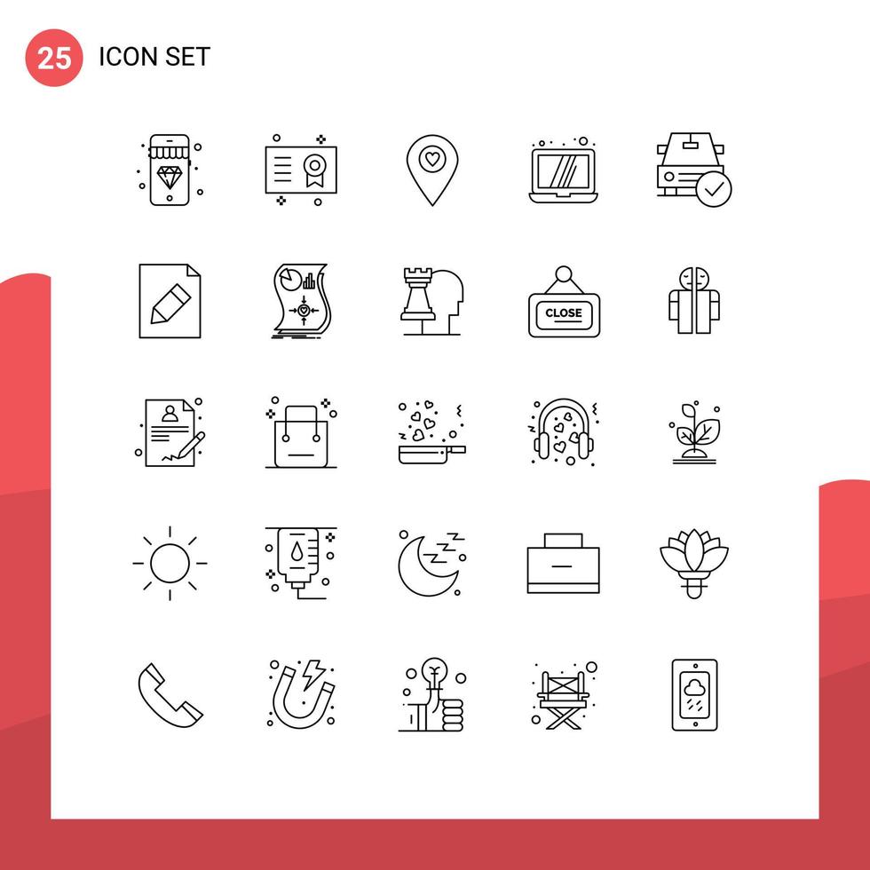 paquete de línea de vector editable de 25 líneas simples de tecnología de corazón de automóvil completa elementos de diseño de vector editables por computadora