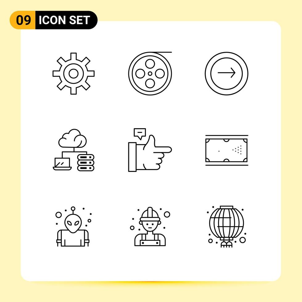 conjunto de 9 contornos vectoriales en cuadrícula para elementos de diseño vectorial editables de navegación de red de aplicaciones de servidor similares Vector Gratis
