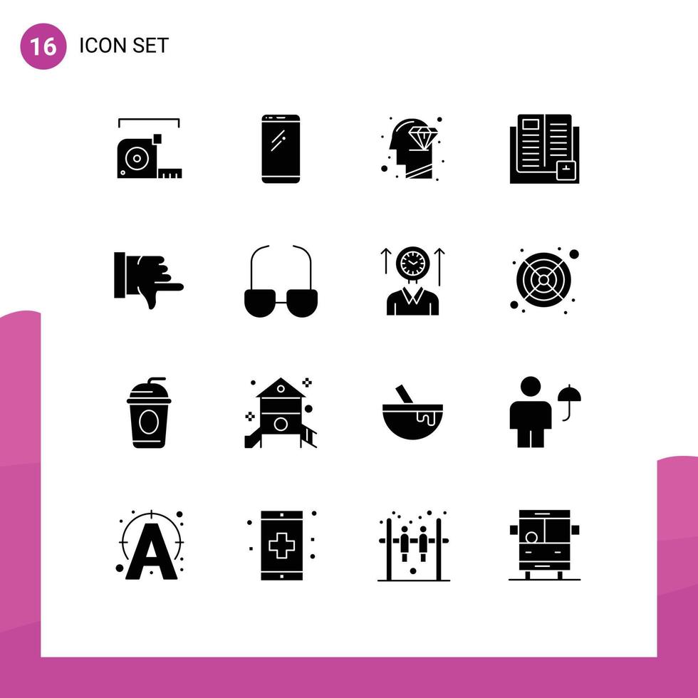 16 glifos sólidos universales establecidos para aplicaciones web y móviles aprendizaje educación android libro mente elementos de diseño vectorial editables vector