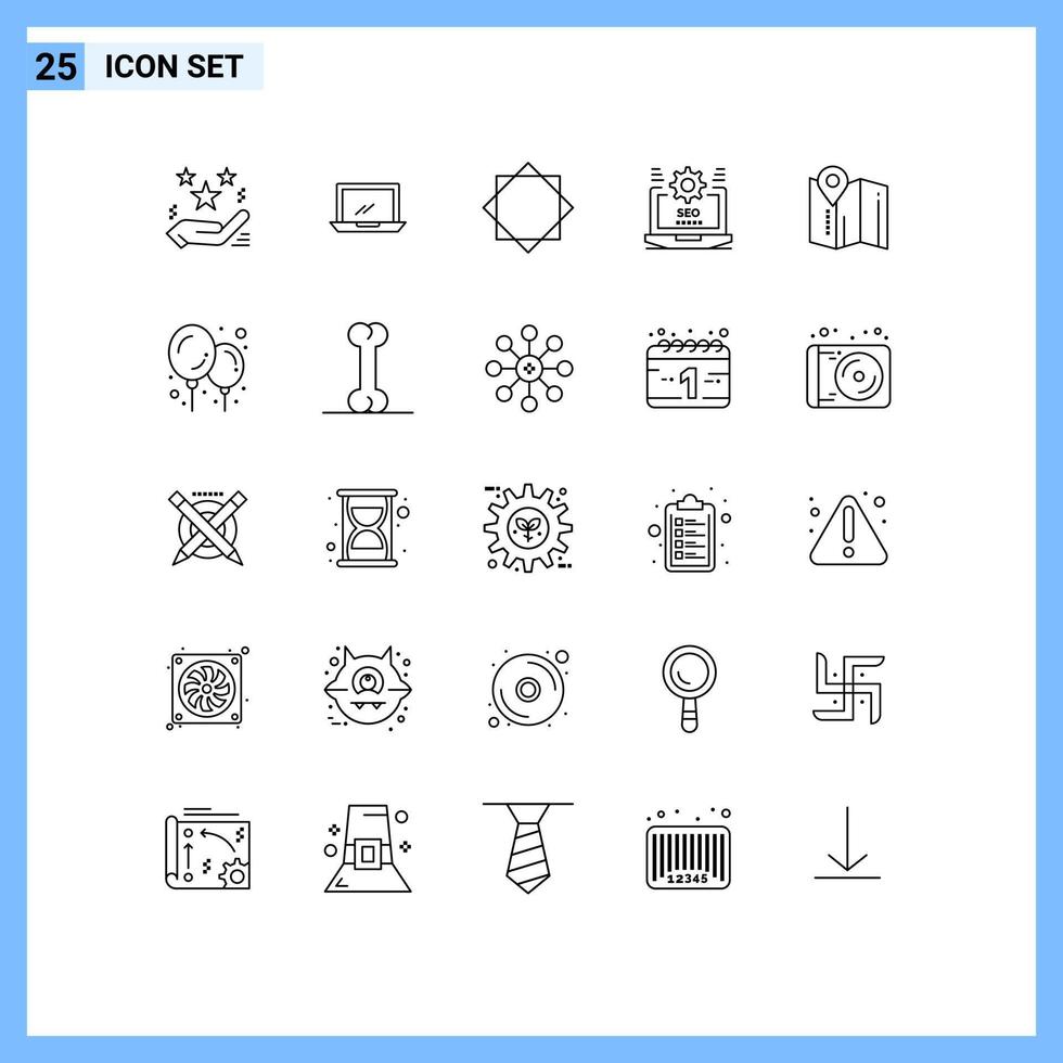 paquete de línea de vector editable de 25 líneas simples de configuración de elementos de diseño de vector editables de virus seo de hardware de computadora portátil