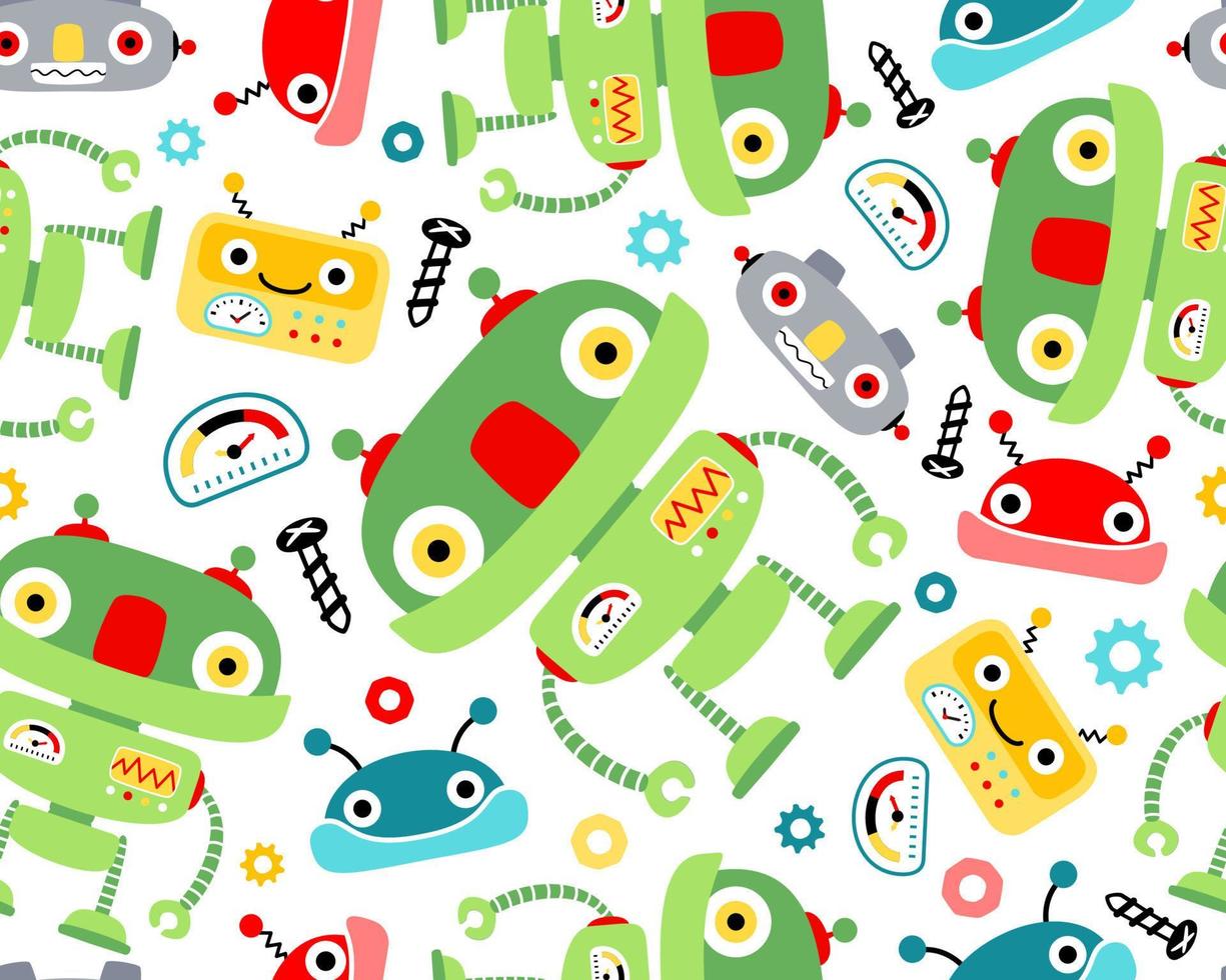 vector de patrones sin fisuras con dibujos animados de robots, ilustración de elementos de robots Vector Pro