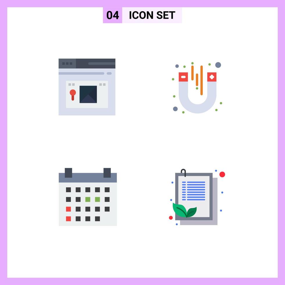 conjunto de pictogramas de 4 iconos planos simples de elementos de diseño de vector editables de evento de prueba de sitio web de fecha de Internet