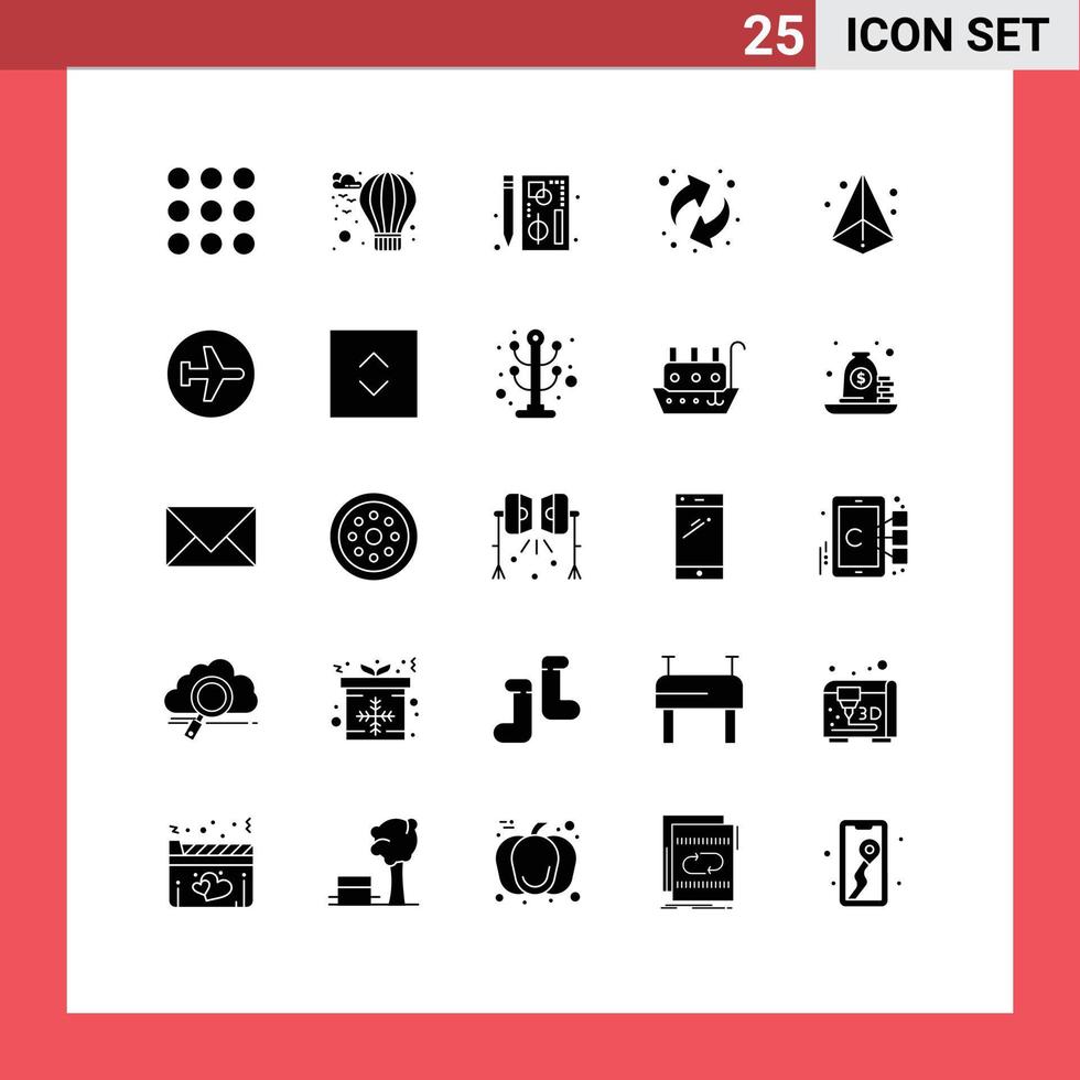 conjunto de pictogramas de 25 glifos sólidos simples de impresión de caja de gráficos láser que reciclan elementos de diseño vectorial editables vector