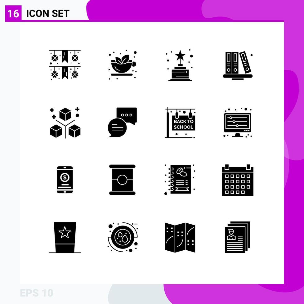 conjunto de pictogramas de 16 glifos sólidos simples de objetos diseño premio codificación educación elementos de diseño vectorial editables vector