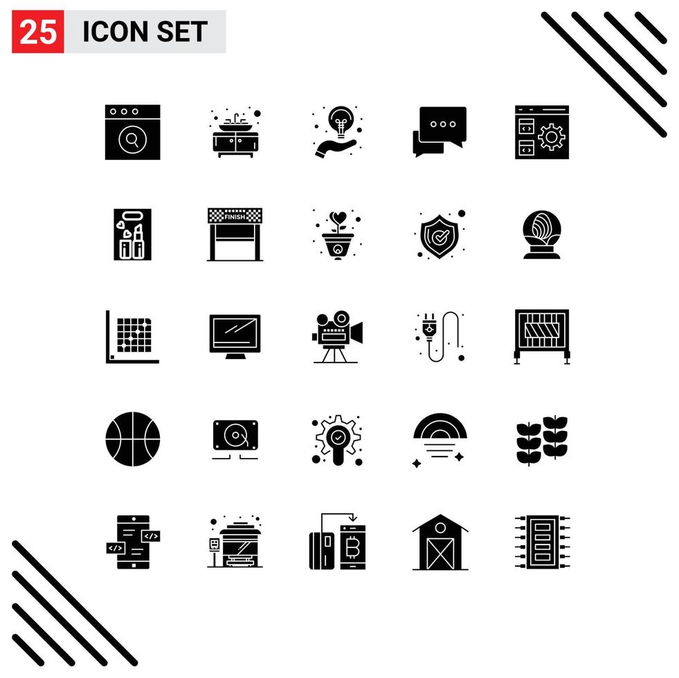 25 glifos sólidos vectoriales temáticos y símbolos editables de mensajes de aplicaciones manuales de codificación de desarrollo elementos de diseño vectorial editables Vector Gratis