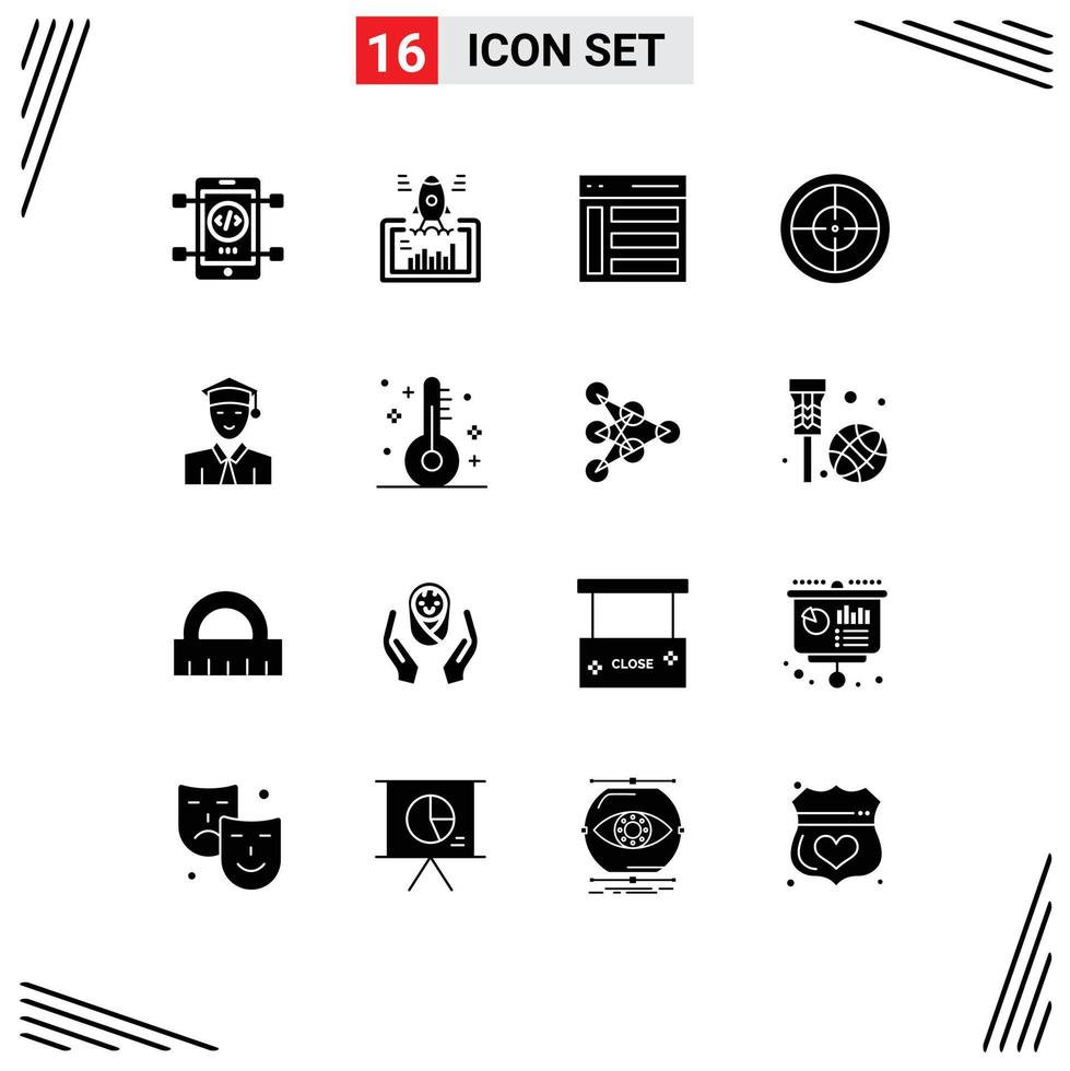 conjunto de 16 glifos sólidos vectoriales en la cuadrícula para elementos de diseño vectorial editables de la barra lateral del ejército web de la insignia del estudiante vector