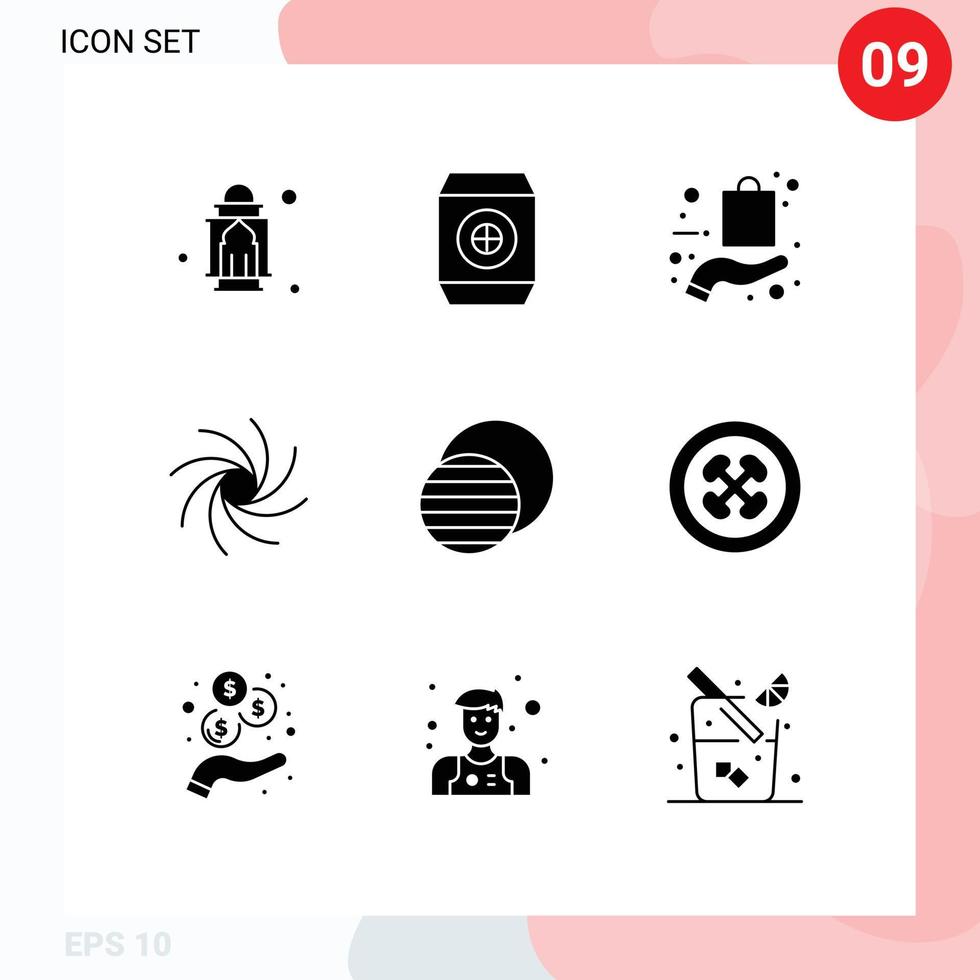 9 conjunto de glifos sólidos universales para aplicaciones web y móviles bolsa del universo científico elementos de diseño vectorial editables de compras de la vía láctea vector