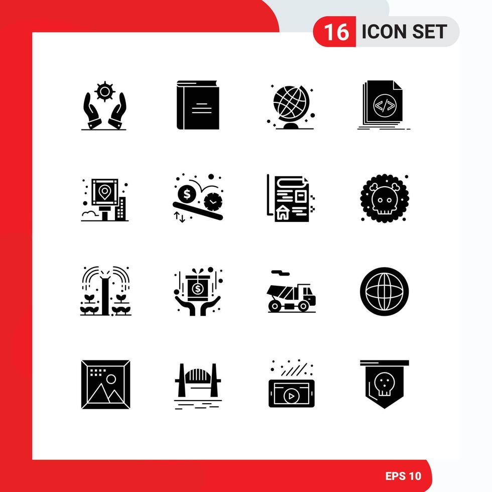16 concepto de glifo sólido para sitios web móviles y aplicaciones programación de la ciudad leer código de archivo elementos de diseño vectorial editables Vector Gratis
