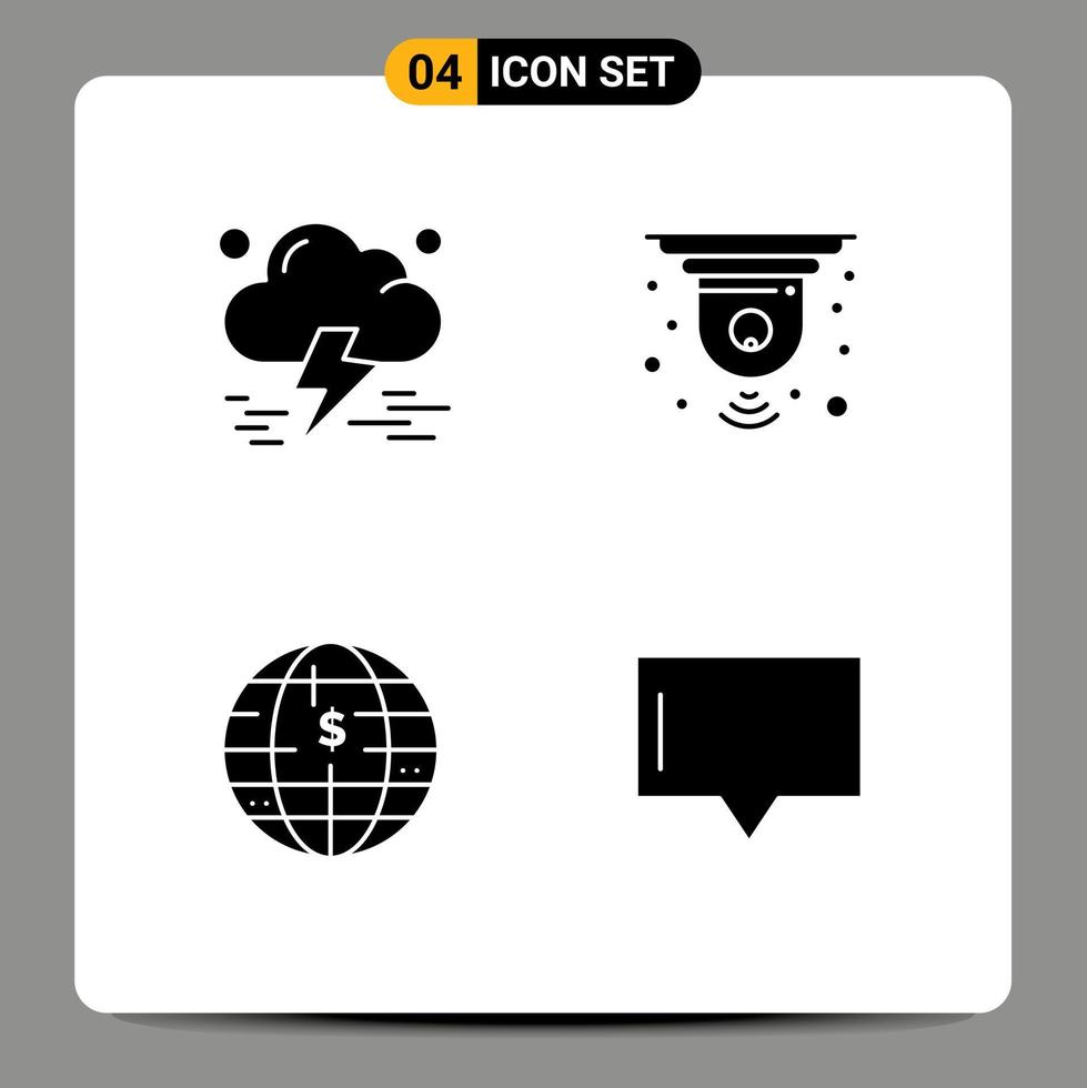 4 conjunto de glifos sólidos universales para aplicaciones web y móviles tormenta de bitcoin en la nube elementos de diseño vectorial editables de criptomoneda cerrada vector