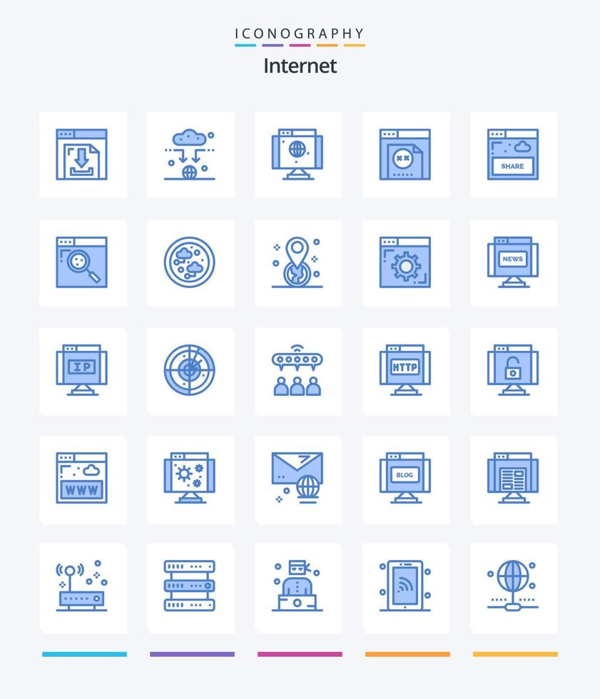 paquete creativo de iconos azules de Internet 25, como compartir. interfaz. computadora. sitio web. error vector