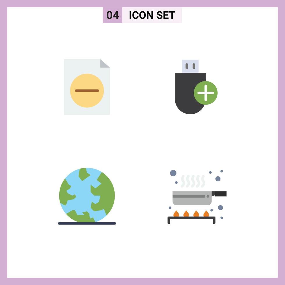 paquete de línea vectorial editable de 4 iconos planos simples de eliminar internet agregar hardware web elementos de diseño vectorial editables vector