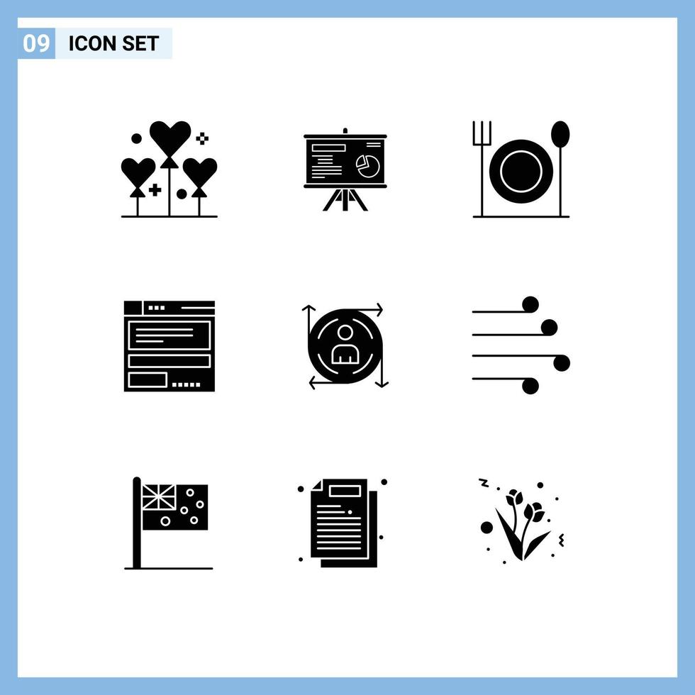 paquete de interfaz de usuario de 9 glifos sólidos básicos de flecha usuario comer código navegador elementos de diseño vectorial editables vector