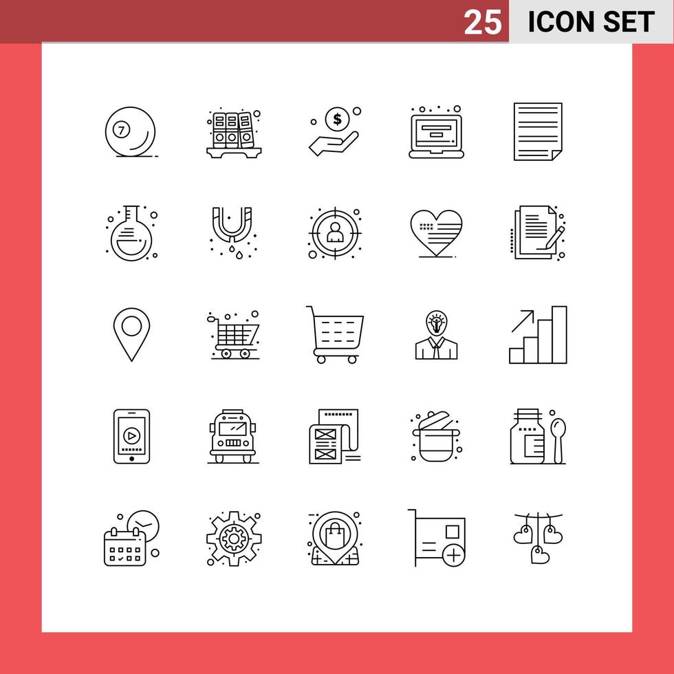 paquete de interfaz de usuario de 25 líneas básicas de datos gadget dólar portátil ayuda elementos de diseño vectorial editables vector