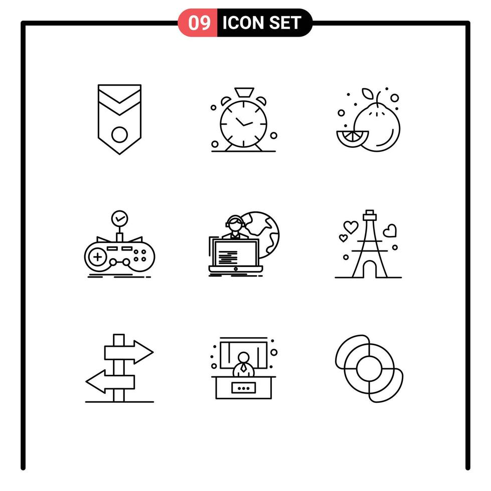conjunto de pictogramas de 9 esquemas simples de elementos de diseño de vector editables de verificación de juego de alerta de gamepad externalizado Vector Gratis