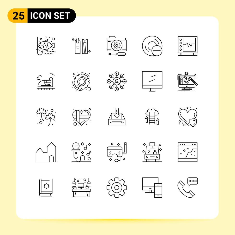 conjunto de pictogramas de 25 líneas simples de dispositivos de gadget computadoras de maquillaje que configuran elementos de diseño vectorial editables vector